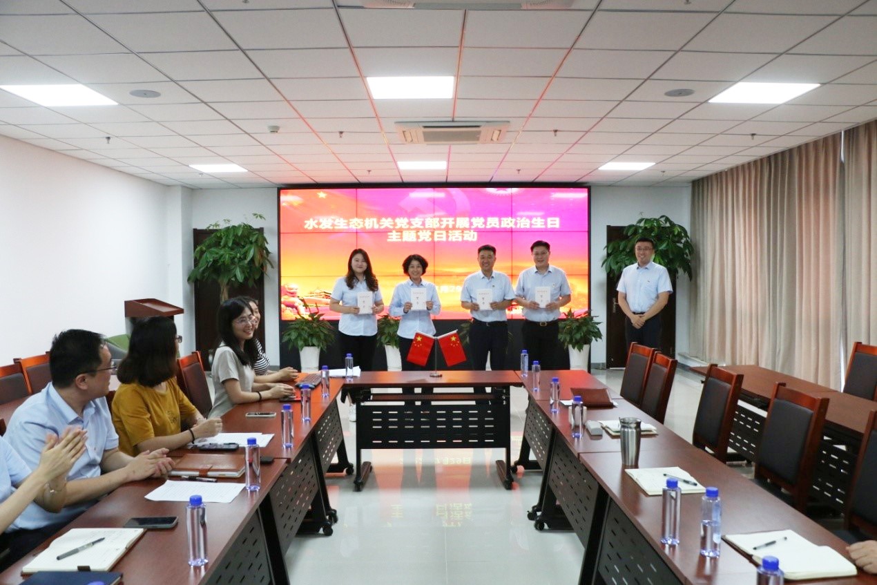 為進(jìn)一步增強(qiáng)黨員身份意識,增強(qiáng)黨員的歸屬感、榮譽(yù)感和責(zé)任感,提升黨組織的創(chuàng)造力、凝聚力和戰(zhàn)斗力。7月29日,水發(fā)生態(tài)機(jī)關(guān)黨支部以主題黨日為載體,為6 -8月份入黨的黨員集體舉辦了一場特殊的生日會----黨員“政治生日”會。水發(fā)生態(tài)機(jī)關(guān)黨支部全體黨員參加此次主題黨日活動。