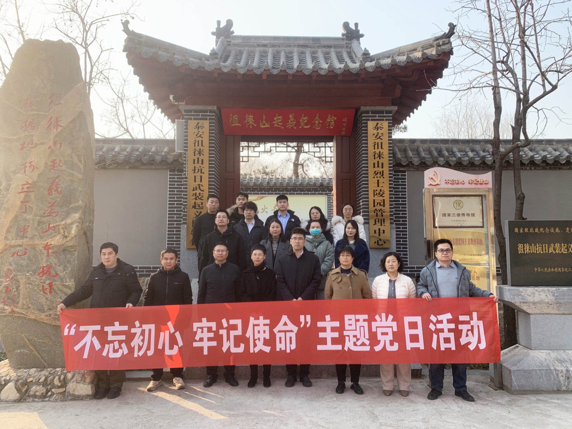 在莊嚴肅穆的徂徠山烈士紀念碑前,全體人員整齊列隊,向革命先烈敬獻花籃,鞠躬默哀,表達對革命先烈的深切緬懷和崇高敬意。面對鮮紅的黨旗,全體黨員高舉右手,重溫入黨誓詞,鏗鏘有力的誓言表達了不忘初心、牢記使命的堅定信念。隨后,全體人員參觀了徂徠山烈士紀念館,認真聆聽講解員講述革命先烈英勇斗爭的光輝事跡,瞻仰珍貴的歷史文物和圖片資料,深刻感受革命先烈堅定的理想信念、崇高的革命精神和不怕犧牲的英雄氣概。