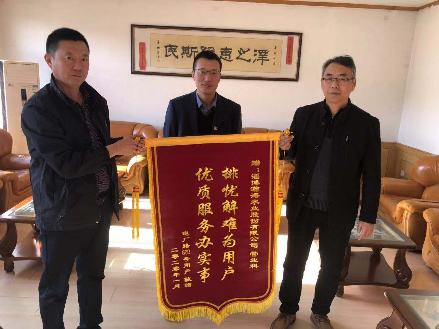 社區(qū)住戶為淄博瀚海水業(yè)股份有限公司送錦旗表謝意