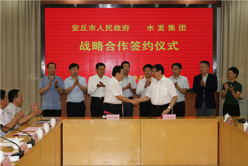 9月27日,安丘市政府與水發(fā)集團(tuán)戰(zhàn)略合作協(xié)議簽約儀式在安丘市政府會(huì)議室隆重舉行。水發(fā)集團(tuán)黨委副書記總經(jīng)理劉肖軍、安丘市政府代市長(zhǎng)賈勤清、水發(fā)集團(tuán)水務(wù)事業(yè)部總經(jīng)理王忠華、齊魯水務(wù)集團(tuán)董事長(zhǎng)公培山、水發(fā)齊魯旅游管理有限公司董事長(zhǎng)盧繼東、水發(fā)齊魯旅游管理有限公司常務(wù)副總經(jīng)理張建實(shí)一同出席了簽約儀式。劉肖軍總經(jīng)理和賈勤清代市長(zhǎng)代表雙方簽署了戰(zhàn)略合作協(xié)議。