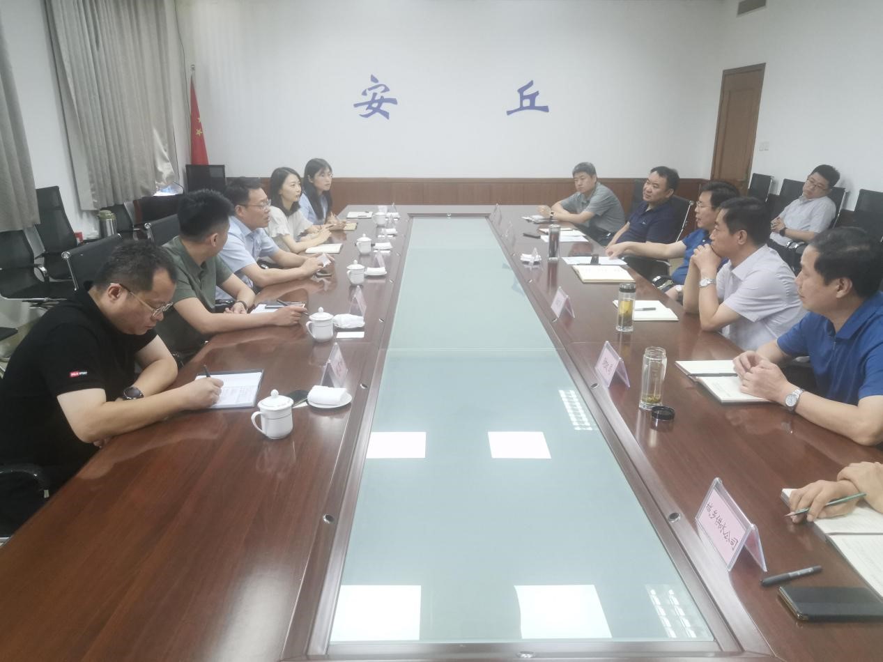 7月14日,集團黨委書記、董事長公培山到安丘市人民政府就安丘市污水處理廠項目進行洽談,安丘市委副書記、市長賈勤清參加座談。