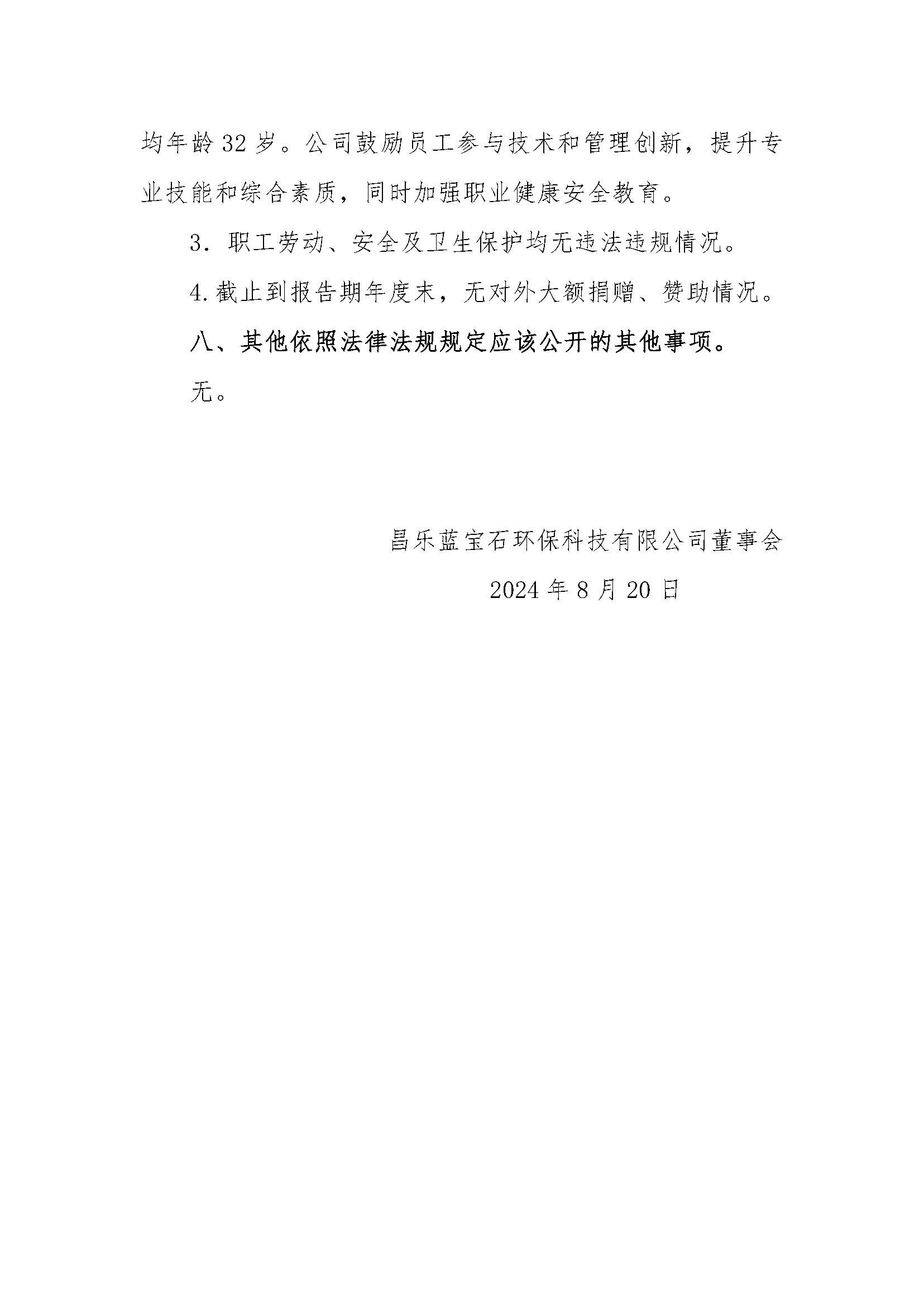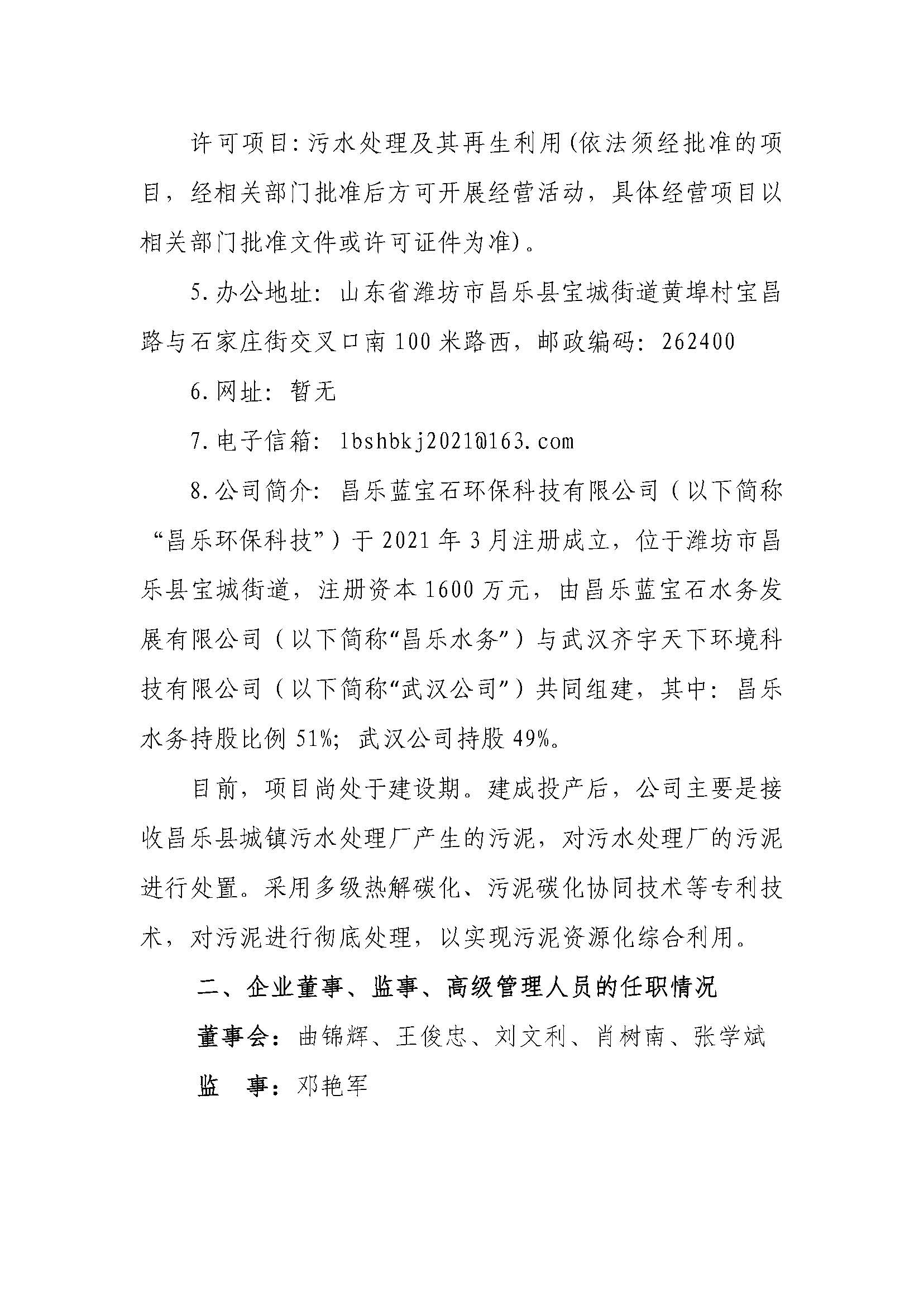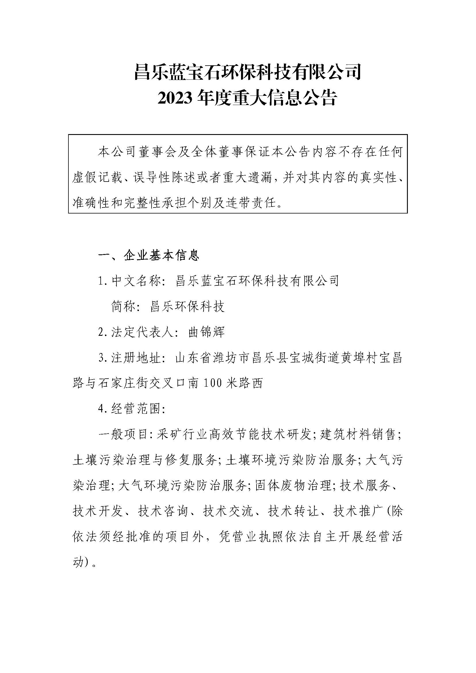 昌樂藍寶石環保科技有限公司2023年度重大信息公告