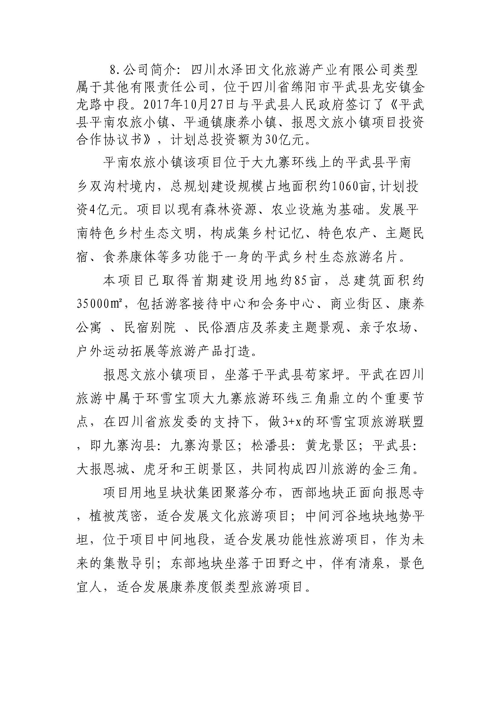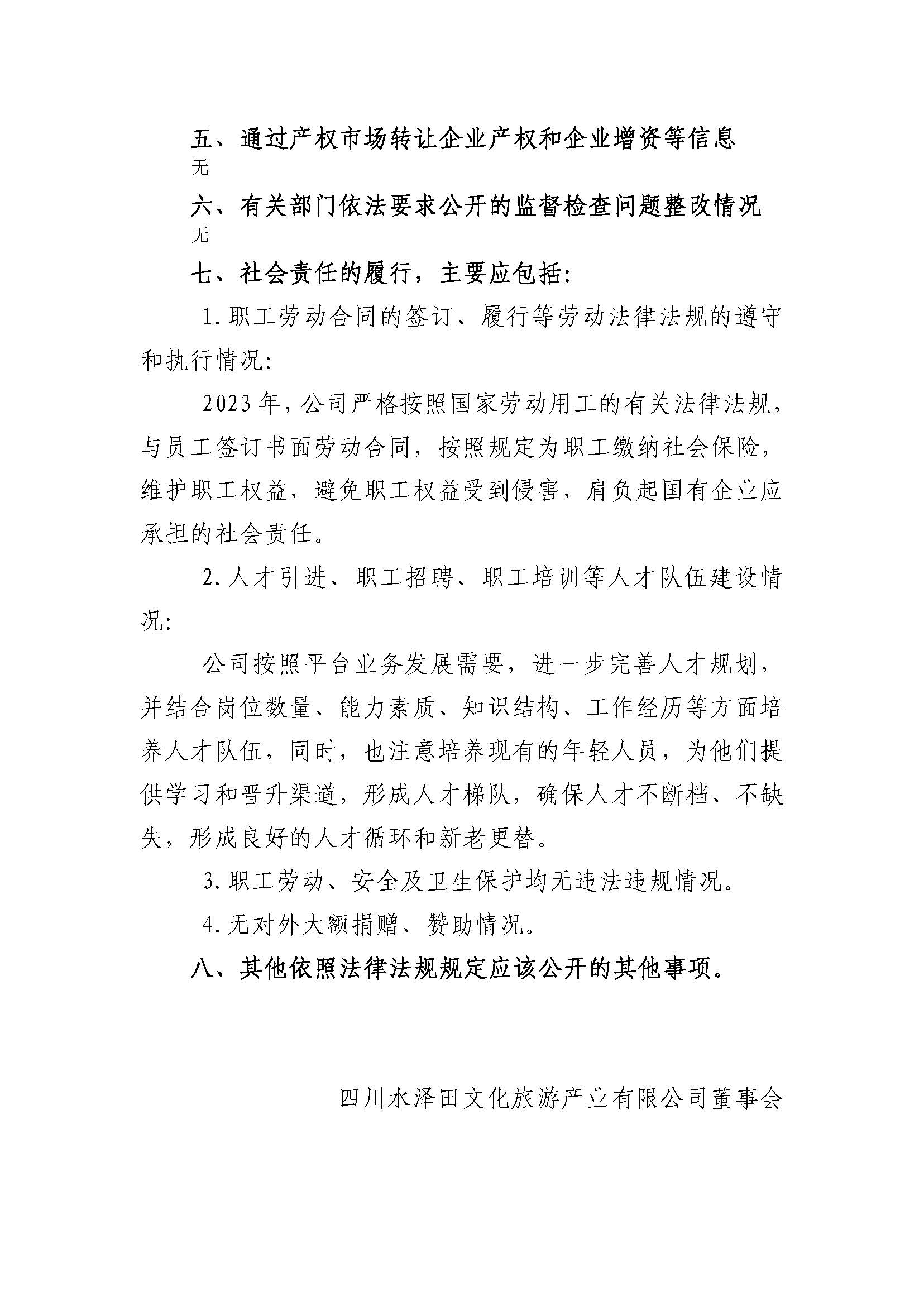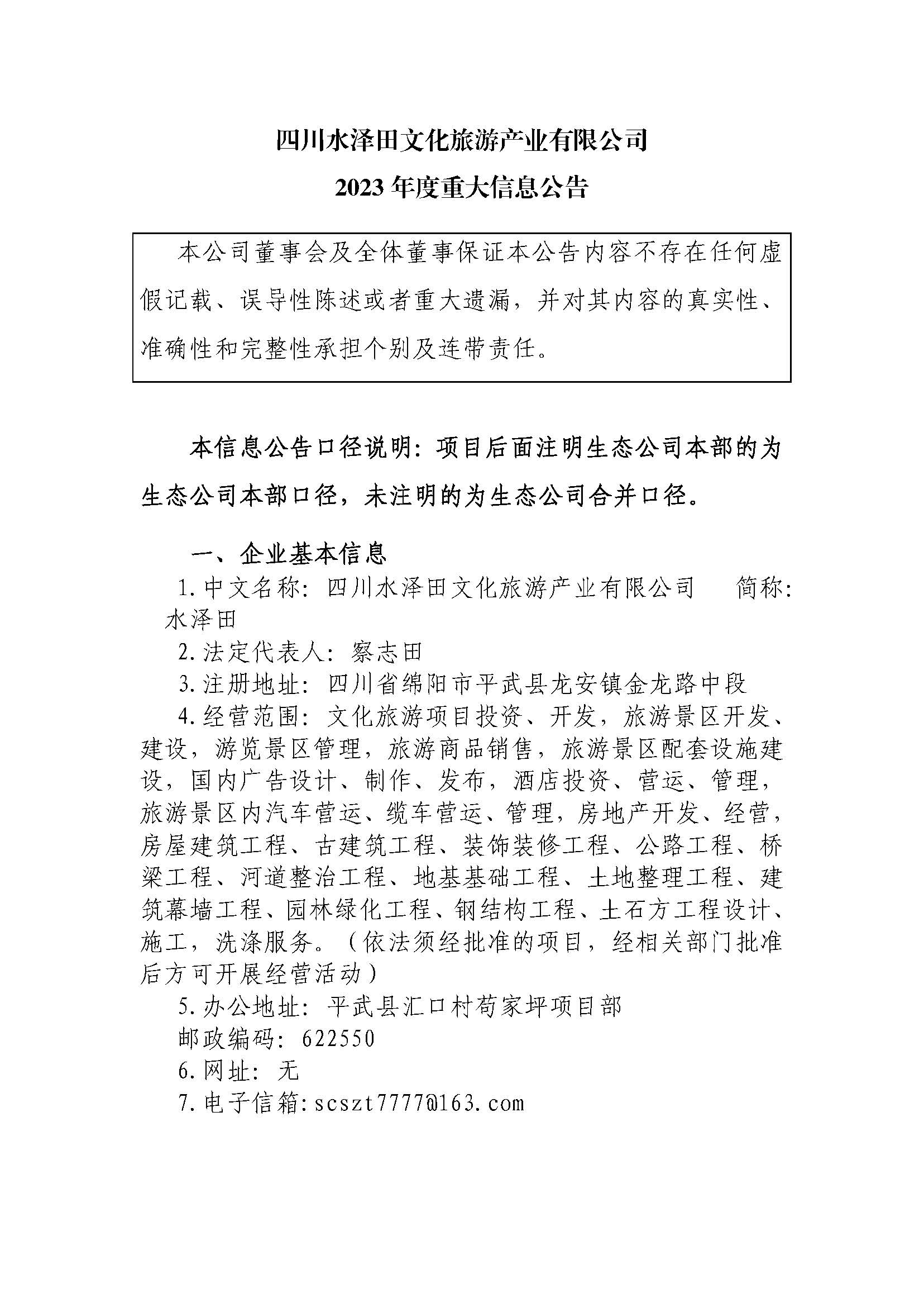 四川水澤田文化旅游產業有限公司2023年度重大信息公告