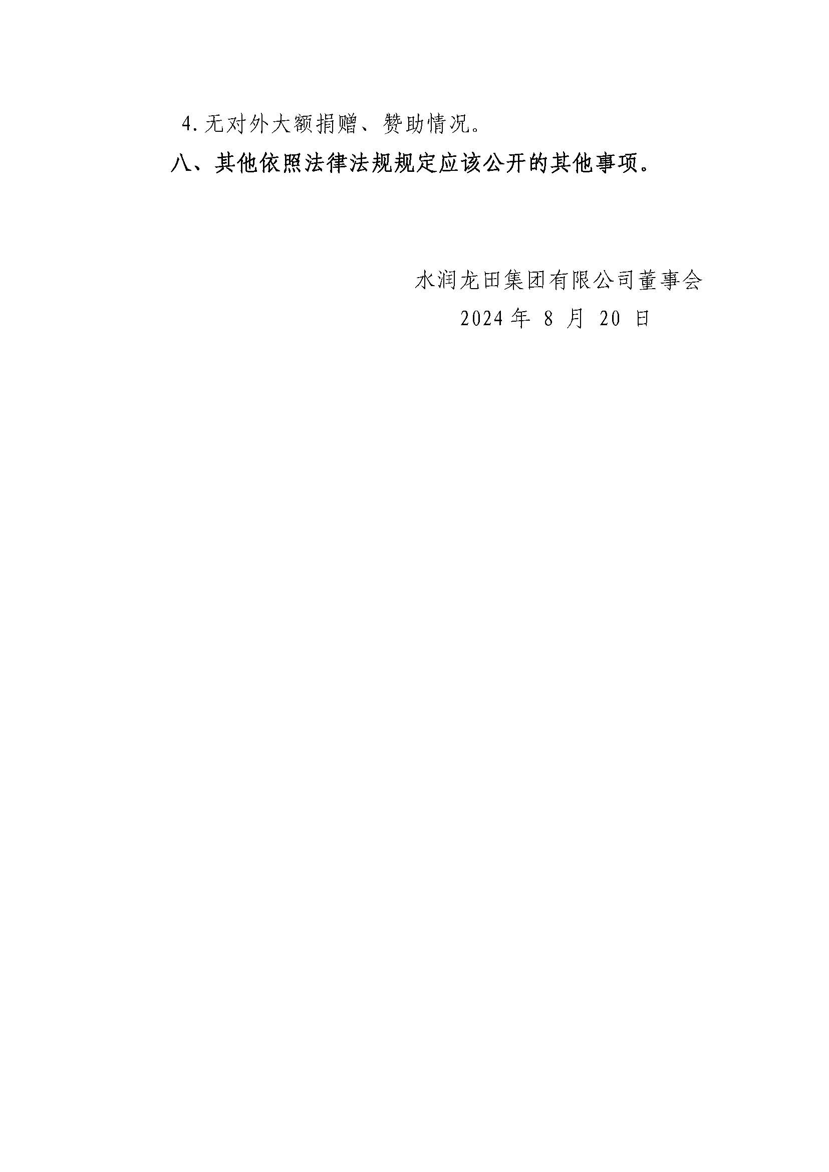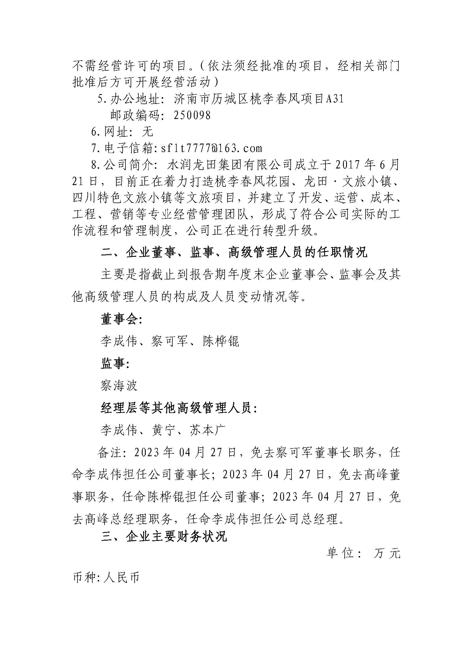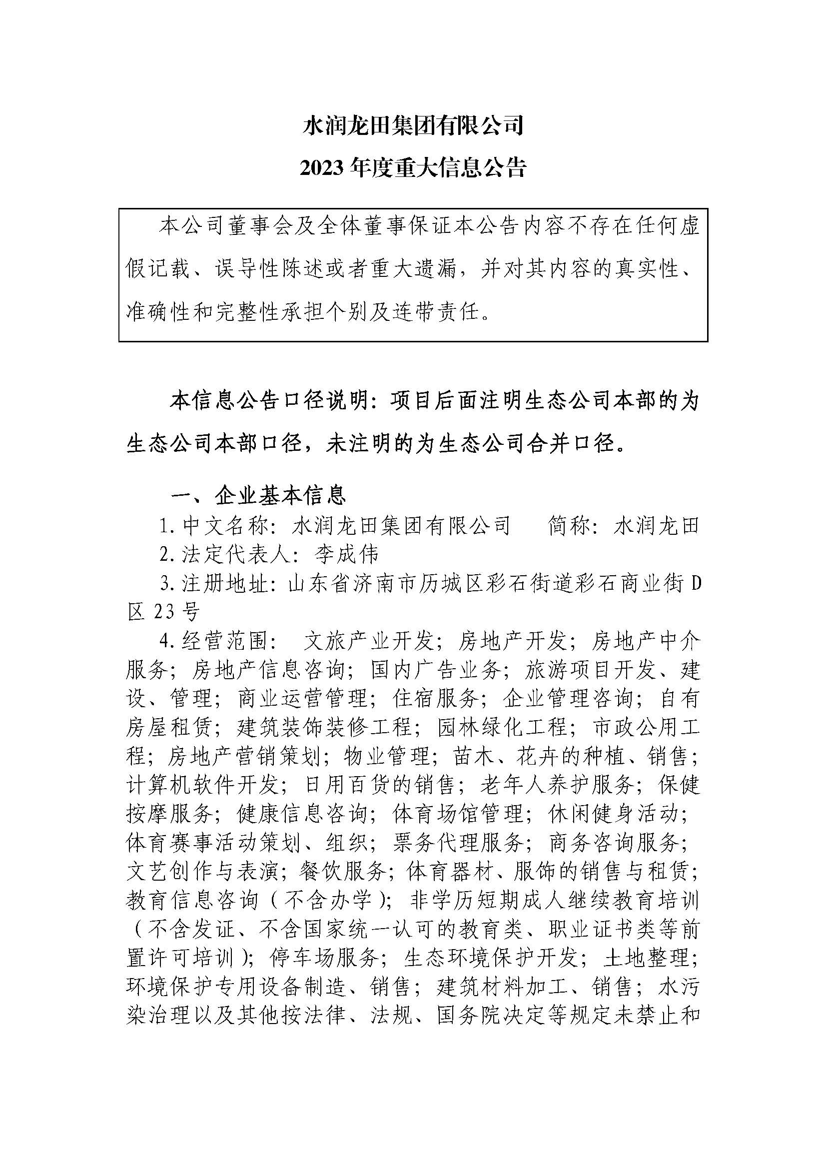 水潤龍田集團有限公司2023年度重大信息公告