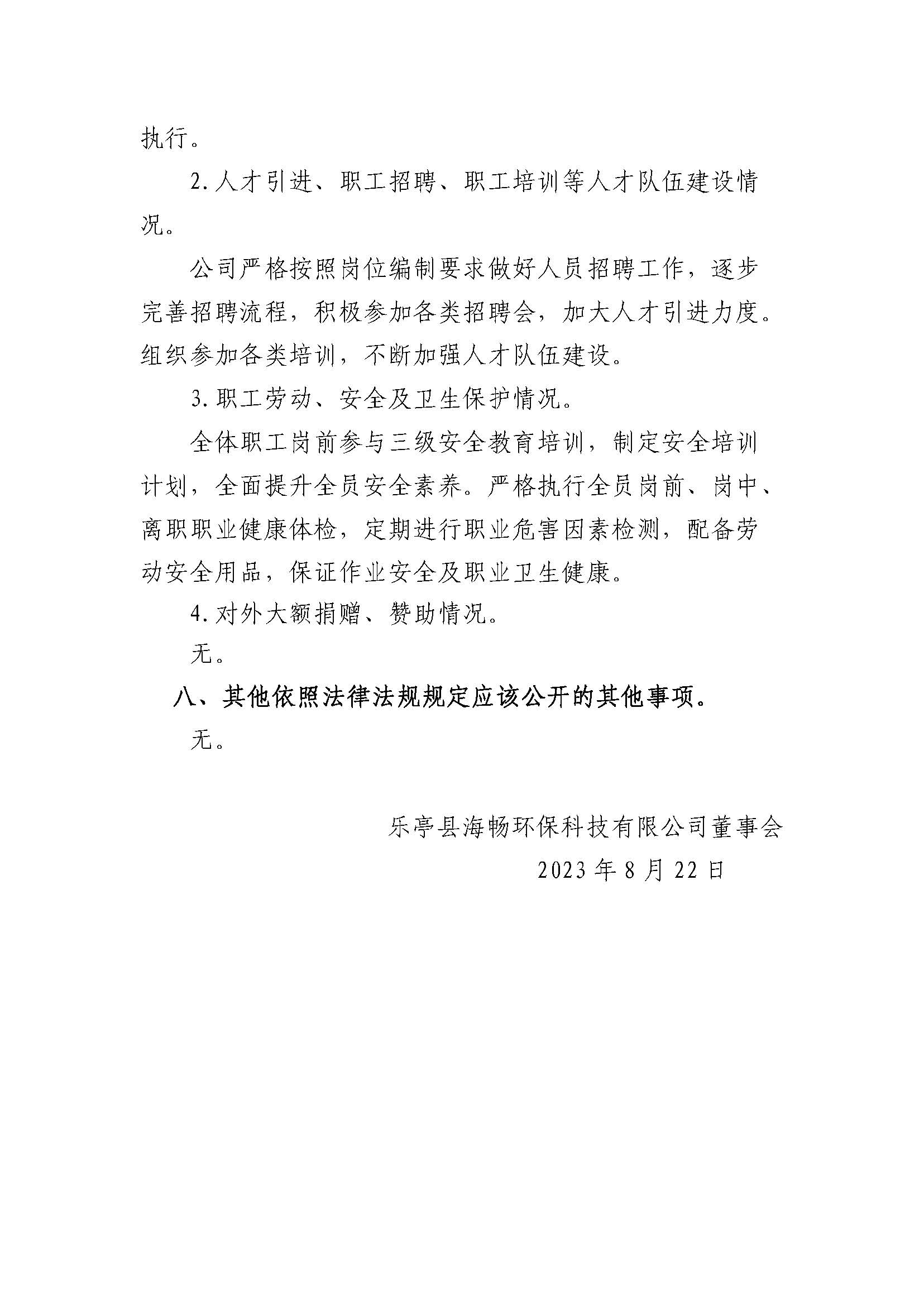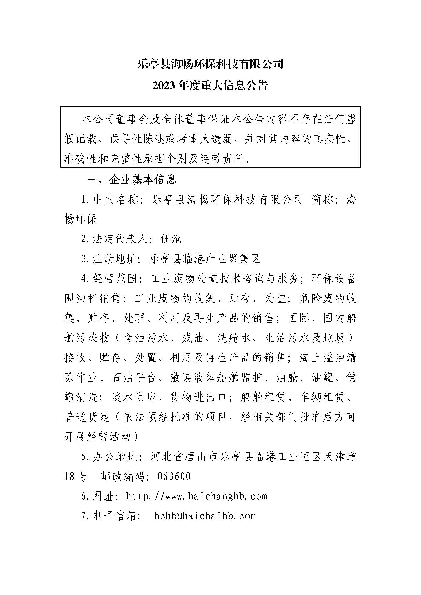 樂亭縣海暢環??萍加邢薰?023年度重大信息公告
