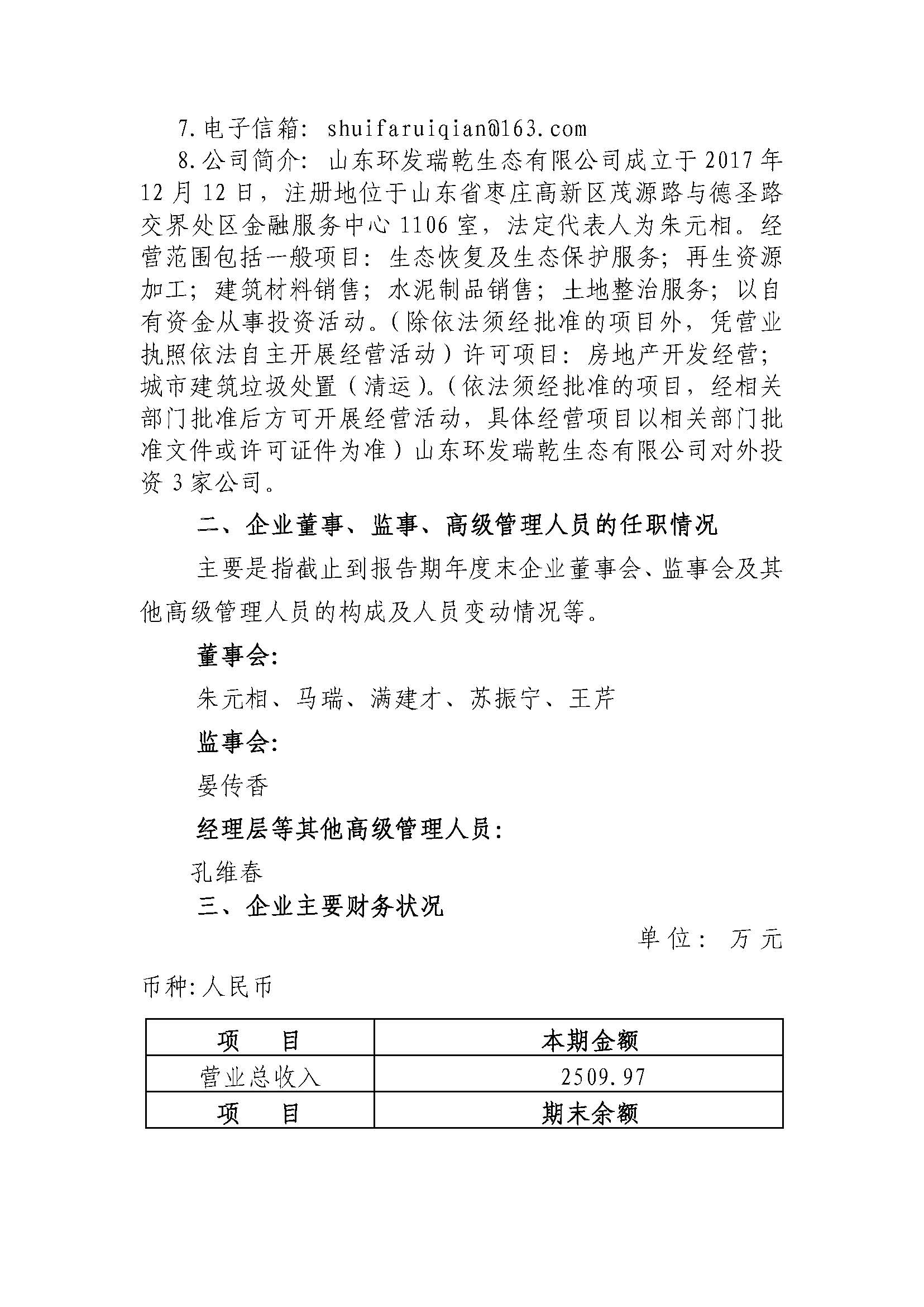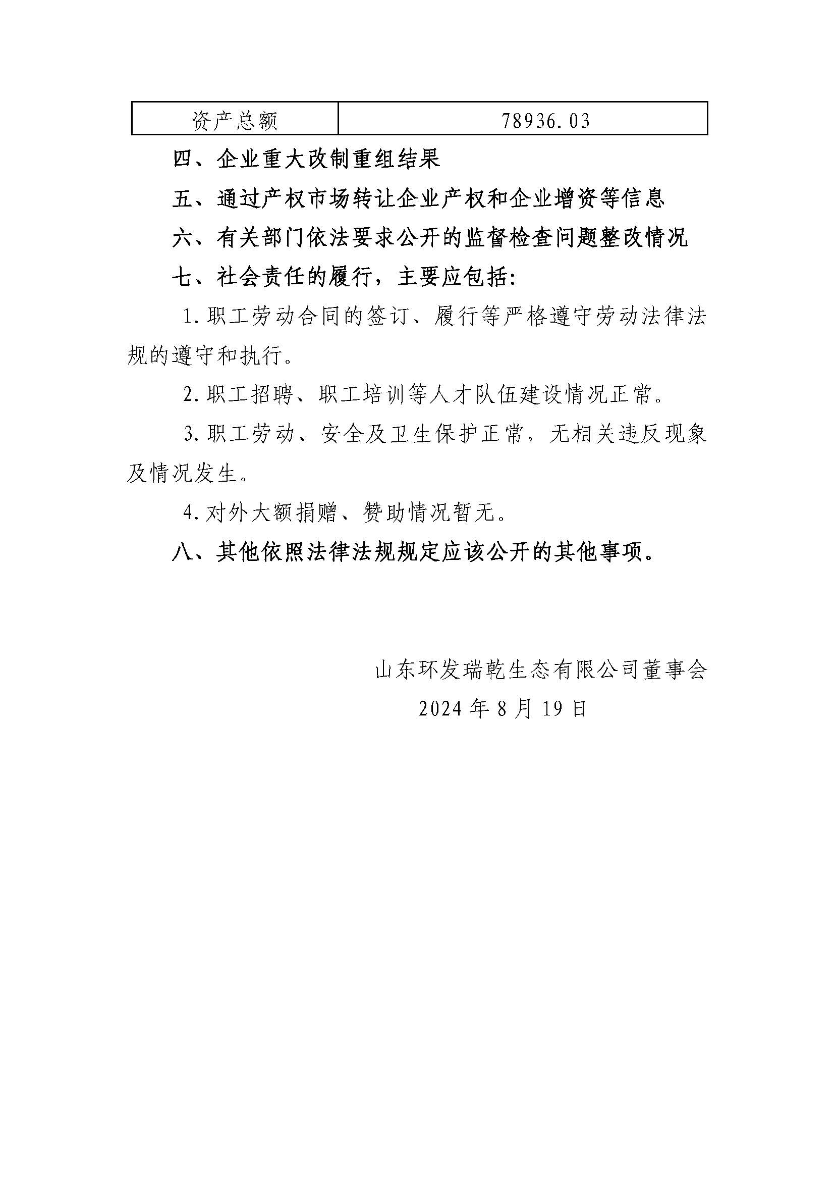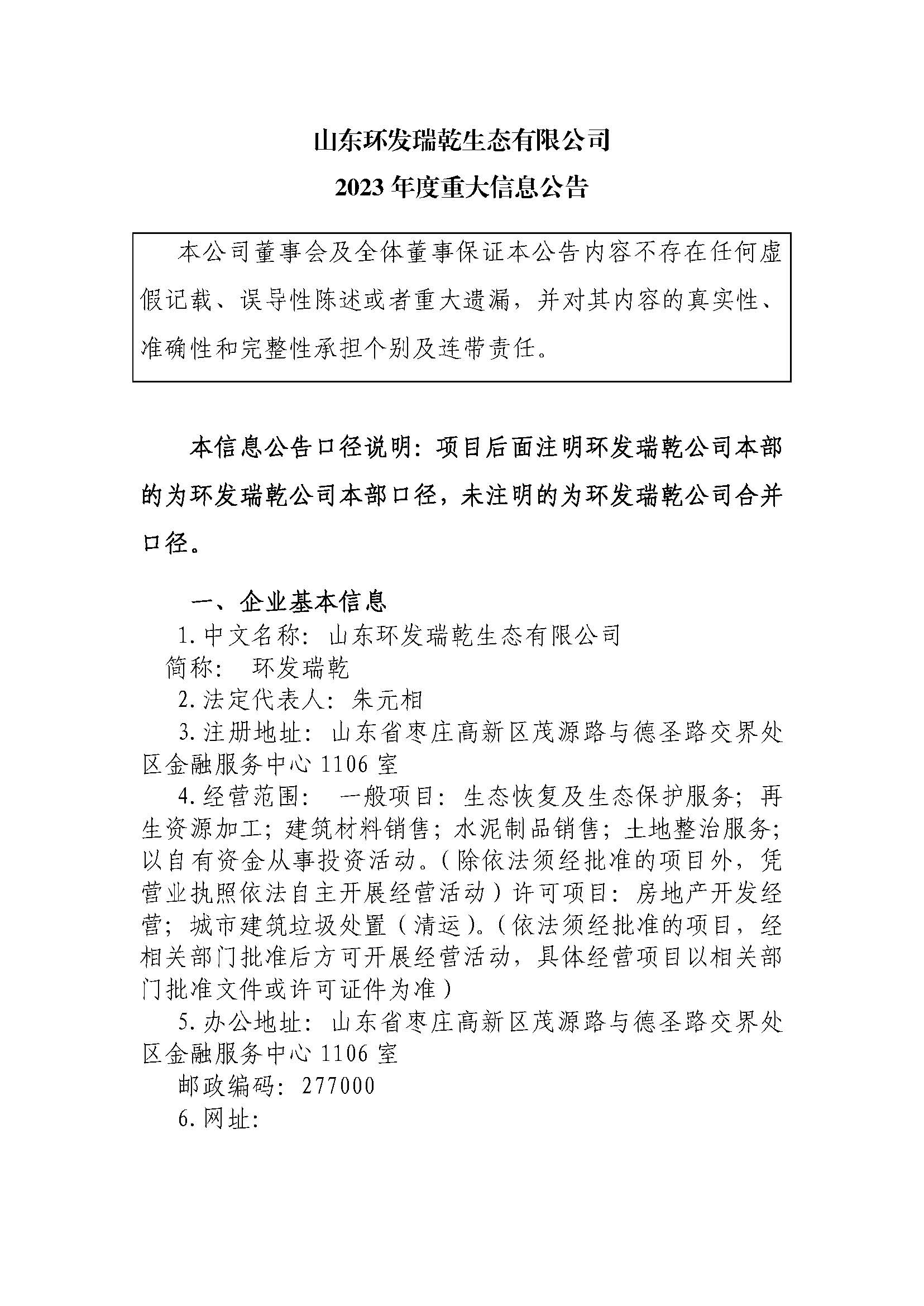 山東環發瑞乾生態有限公司2023年度重大信息公告