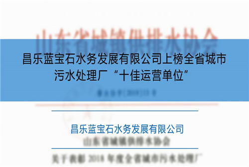山東省城鎮(zhèn)供排水協(xié)會日前公布了年度全省城市污水處理廠“十佳運營單位”的表彰決定,專家組共評出73家污水處理廠為年度全省城市污水處理廠“十佳運營單位”,其中,昌樂藍寶石水務(wù)發(fā)展有限公司榜上有名。