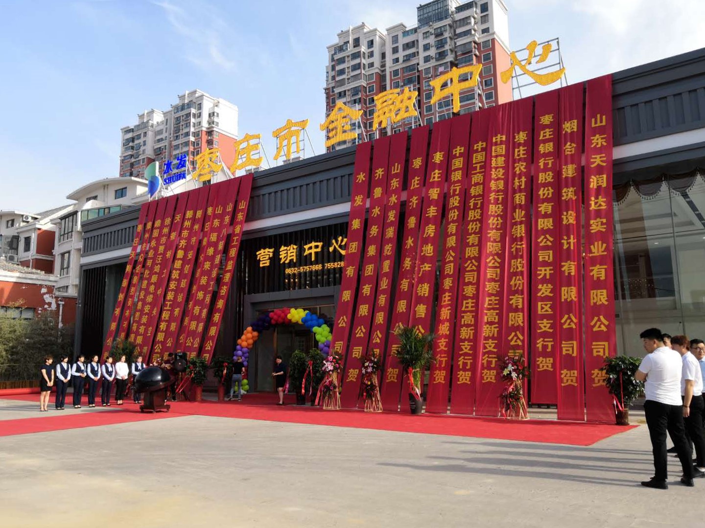 5月24日上午8:00,棗莊市金融中心項目營銷中心盛大開館。齊魯水務(wù)集團有限公司總經(jīng)理助理孫玉國、山東水發(fā)瑞乾置業(yè)有限公司董事長朱元相、副董事長馬瑞等人上臺共同啟動了水晶球, 宣布營銷中心正式開館。