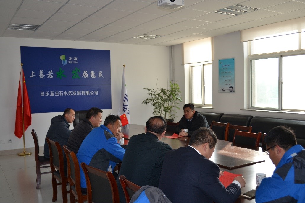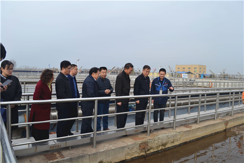 2019年1月8日,昌樂縣委常委統戰部部長陳新廠一行到昌樂藍寶石水務發展有限公司進行現場調研,昌樂縣環保局張春明局長、高春平書記以及昌樂藍寶石水務發展有限公司董事長王俊忠陪同。