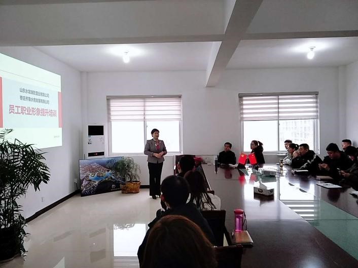 為增強企業員工自身修養,提升企業對外良好形象,1月19日,棗莊水務公司在三樓會議室舉辦了員工職業形象提升培訓會。本次培訓邀請了山東省工行內訓師、山東省2018年全國推優大賽“優秀培訓師”孔令霞老師進行授課,棗莊水務公司、水發瑞乾公司領導班子及全體員工參加了培訓會議。