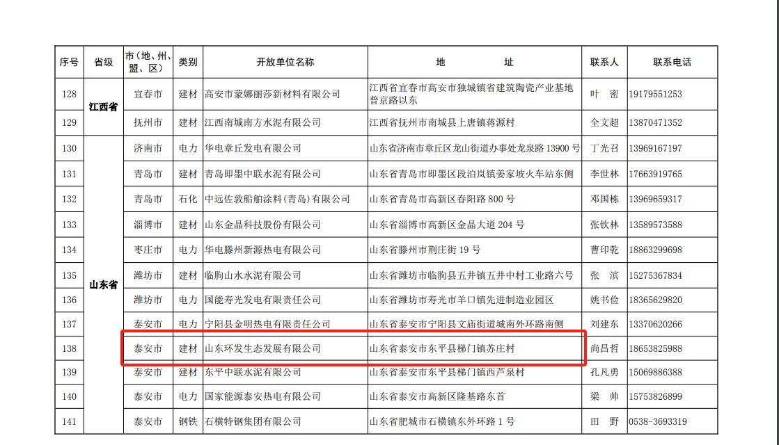 6月5日,泰安市“6·5環保日主題宣傳活動”在寧陽縣復圣文化園舉行?;顒庸剂?025年全國第一批包括石化、電力、鋼鐵、建材行業等“新四類”環保設施向公眾開放單位304家(山東省28家企業入選),山東環發生態發展有限公司榮獲該殊榮。
